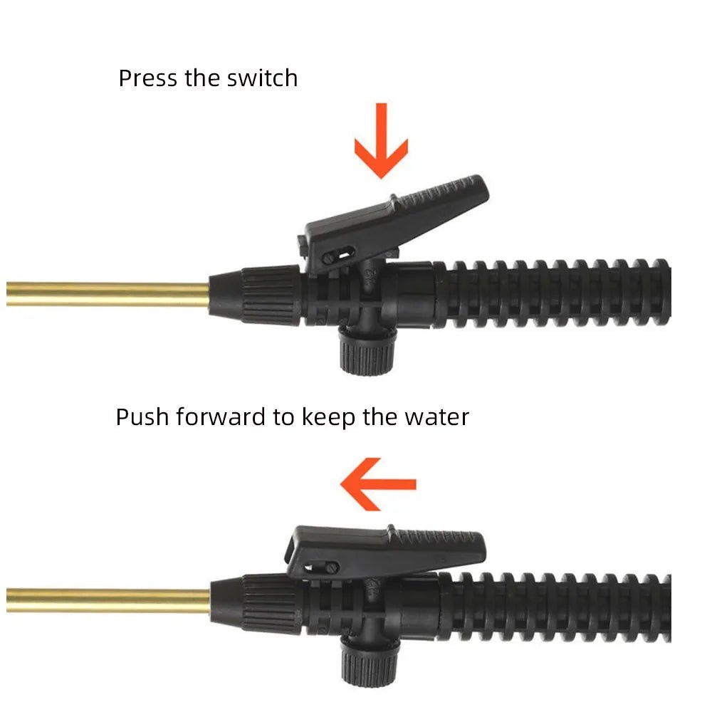 4.There is the lock switch on the spraying head. Push down and forward the switch can make it lock.